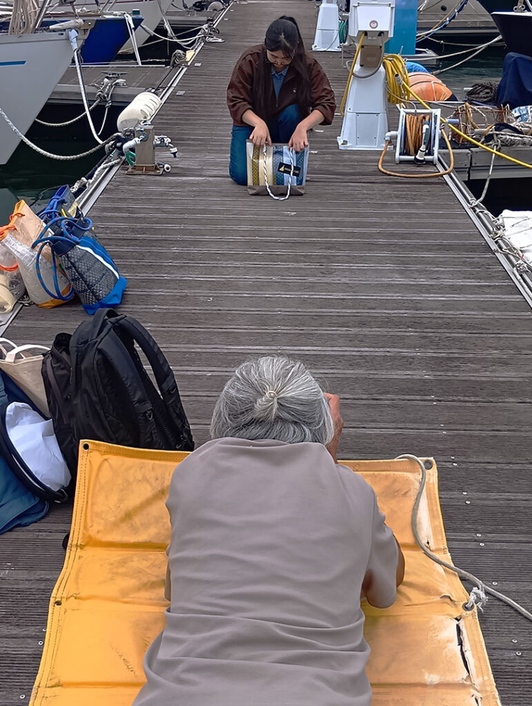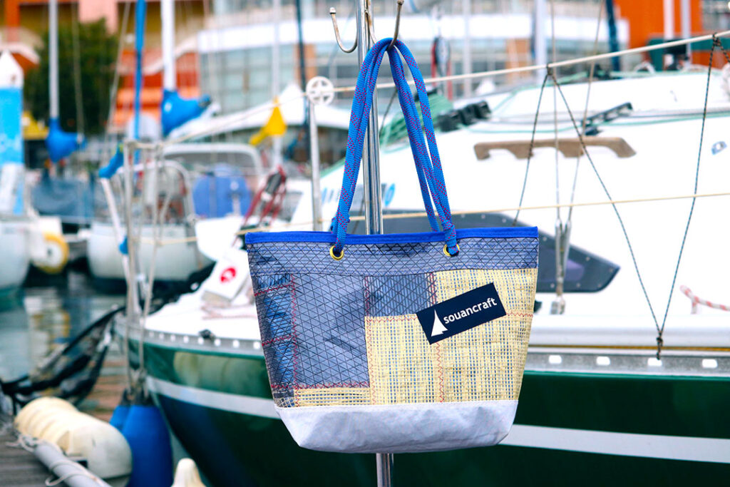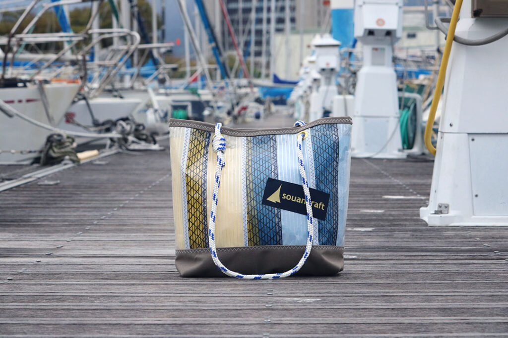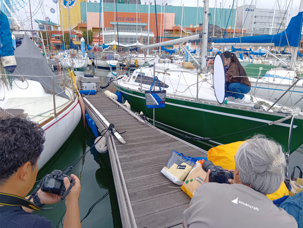 ヨットの帆を使ったバッグだからこそできる写真。ストーリーが乗ってきっと良いものになる。